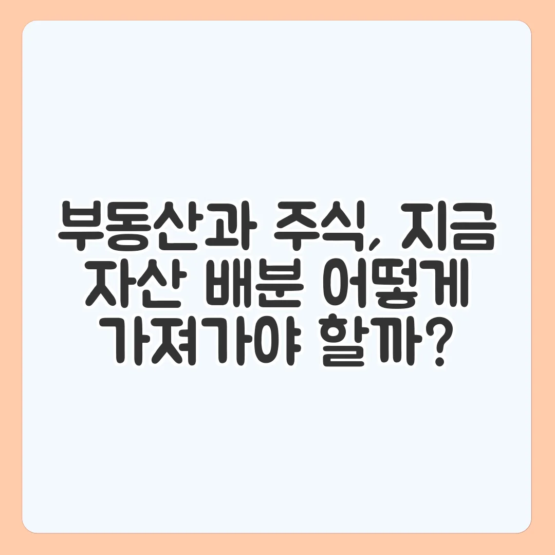 2025년 하반기, 많은 투자자들이 가장 고민하는 질문은 바로 “자산 배분”입니다. 금리 인하 가능성, 정부의 부동산 규제 변화, 글로벌 증시의 불확실성까지 겹치면서 어디에 비중을 두어야 할지 판단이 쉽지 않습니다. 이번 글에서는 부동산과 주식 사이에서 합리적인 자산 배분 전략을 어떻게 세워야 할지 살펴보겠습니다.